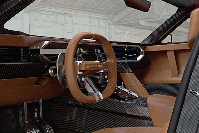 No interior temos uma mistura de carbono, metal e pele de muito bom gosto.
